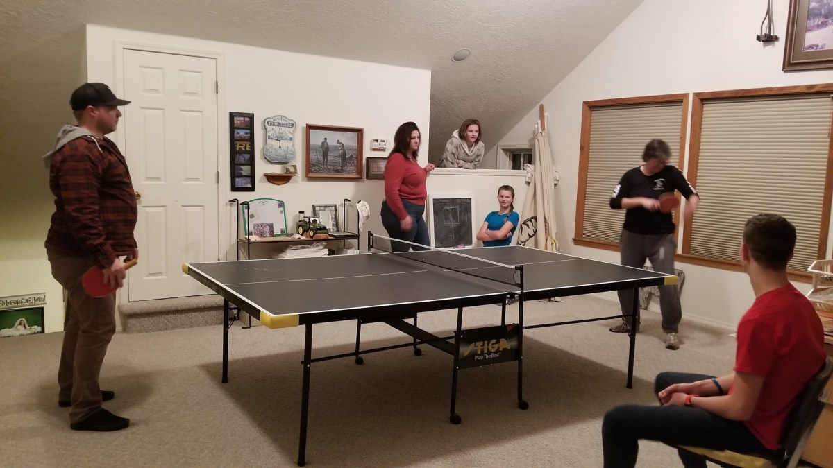 On Thanksgiving Eve we went to my Aunts house to have dinner with her and my cousins family. We had some delicious food and played a ping pong tournament. It was a lot of fun. We laughed so much. I was pretty terrible at ping pong (no surprise) and got out of the tournament my first game. I think Ryan won – am I right Brandi? Or maybe it was McCoy….guess it doesn’t matter it was fun all the same.