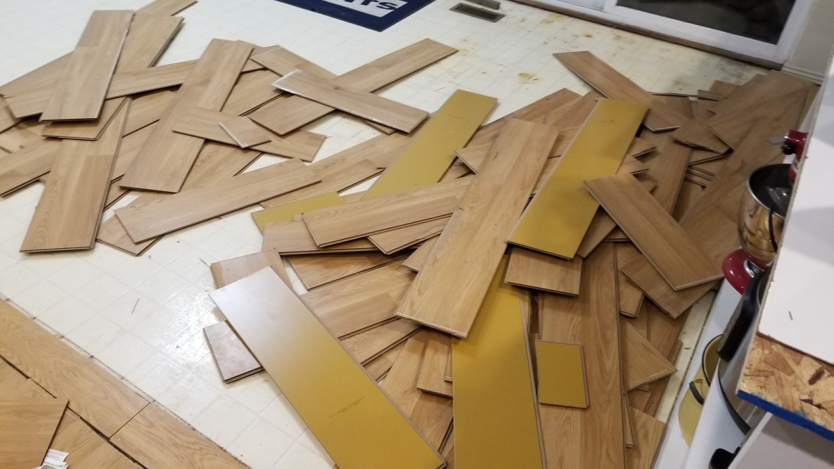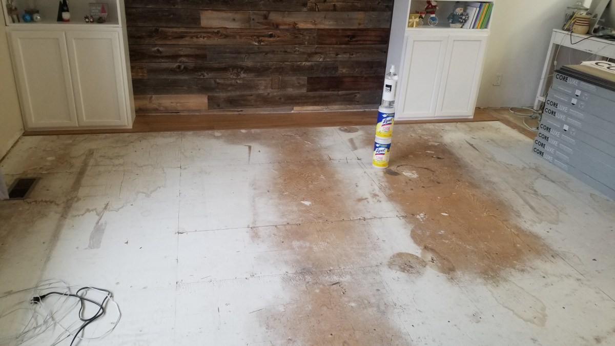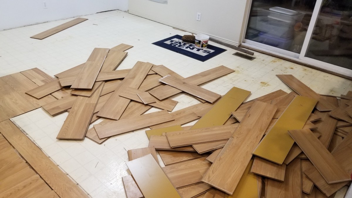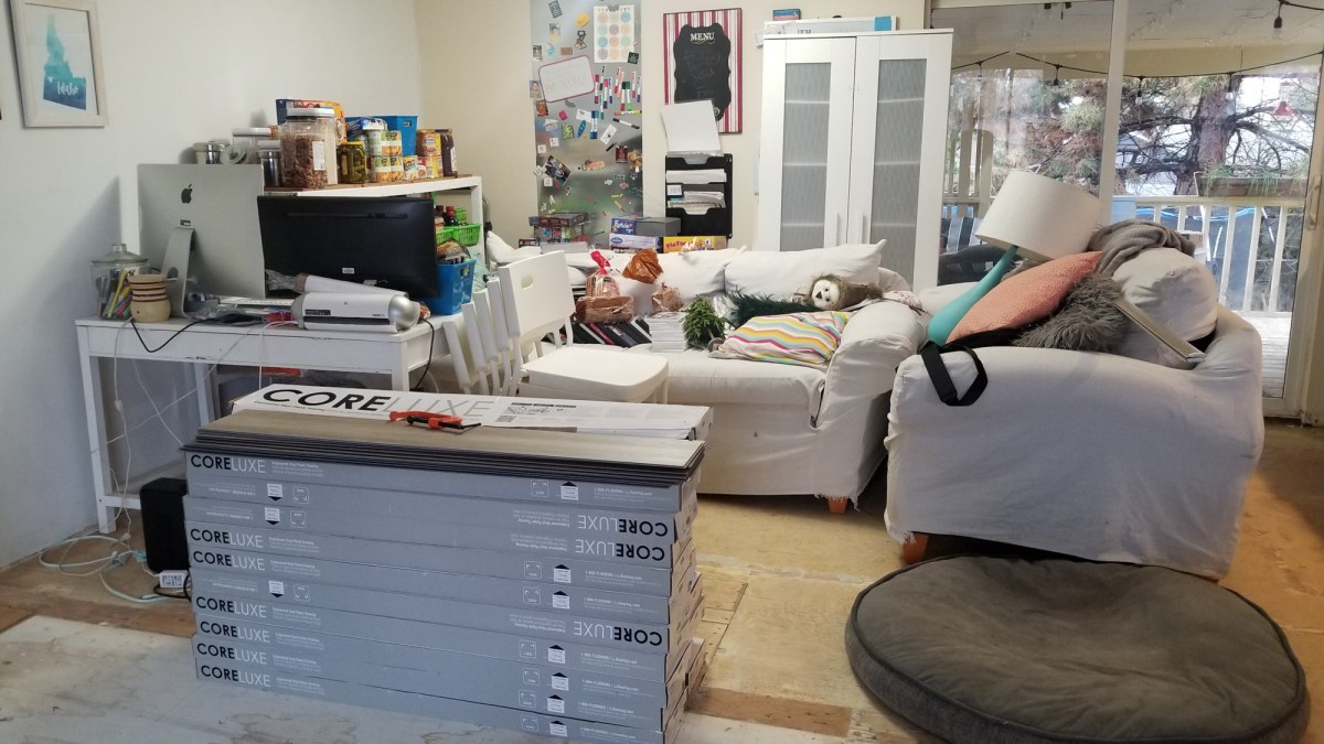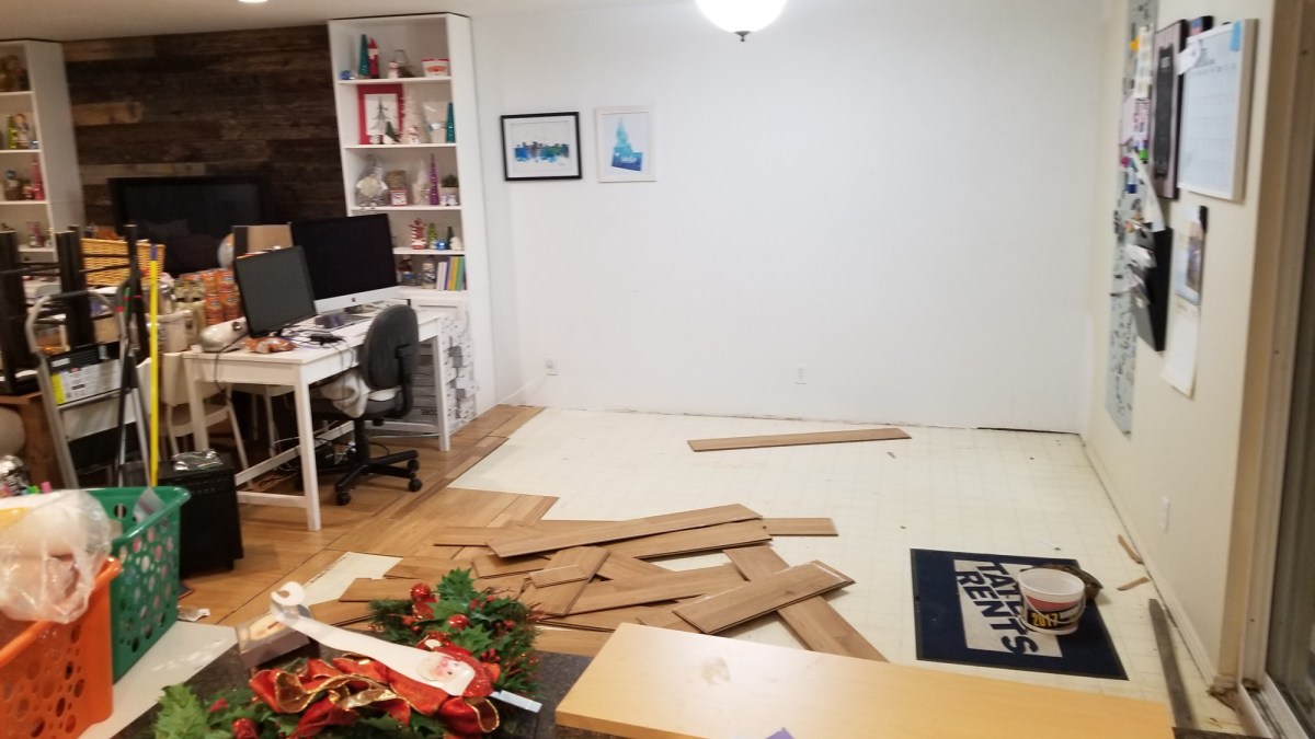 Jaelee and I tore out all the old floors by ourselves. We moved the furniture from one side of the house to the other multiple times. It took us all weekend. Greg and Jayse were working on the deck or they would of helped us. We took all the floors and trim out. We threw it all out the front window, which was Jaelee’s favorite part. Her and I were definitely sore for days after. We had to live with all our stuff piled up for a week. The following weekend was when my sister and fam were coming for Thanksgiving week. Greg and his friend Greg installed all the new flooring in one weekend. I helped Greg finish out the last bit of it in the dining room but we got it all done just before they got here.