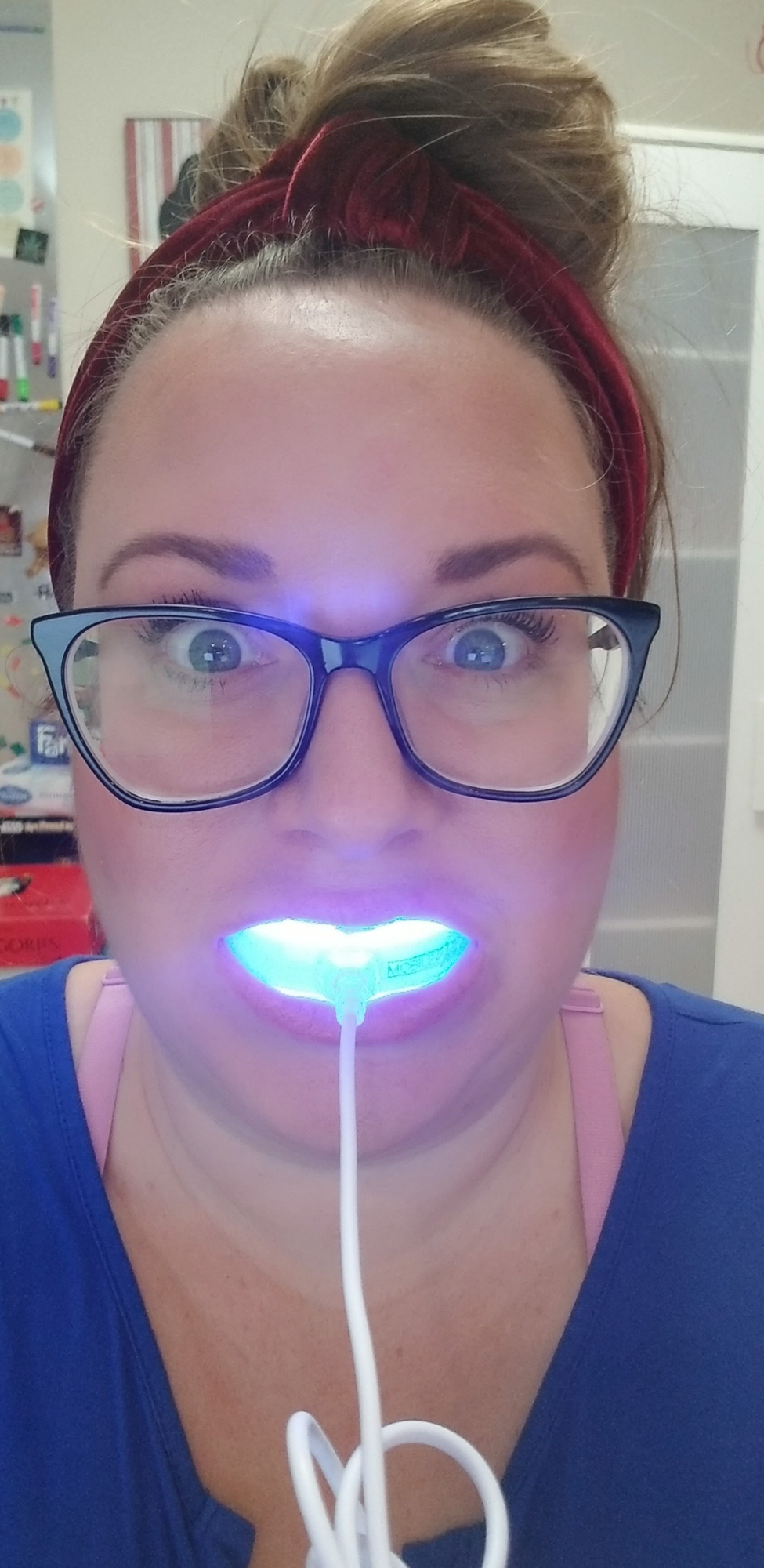 I got a teeth whitening kit which I still haven’t tried, other than to put this part in my mouth to take a goofy picture.
