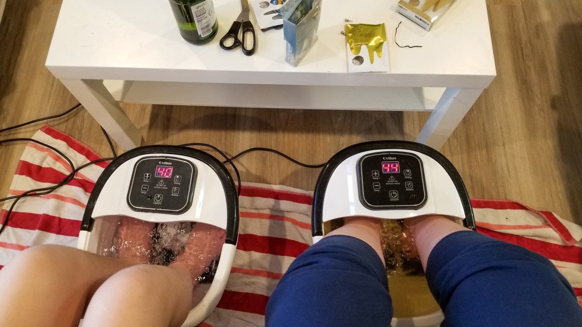 Jaelee and I did a pedicure spa day a couple of times in January. I used some Amazon gift card money I’d gotten for my birthday and Christmas to get us some new foot soakers. They are much deeper and keep the water hot. So hot our feet turned red.