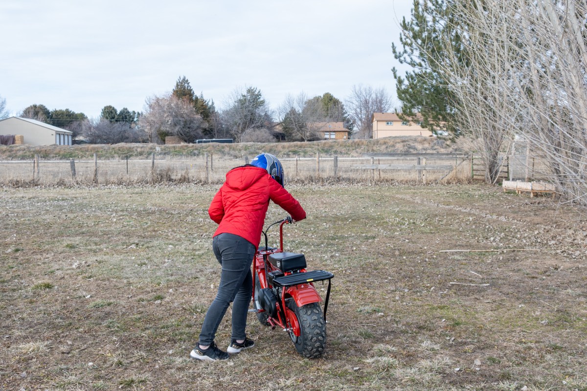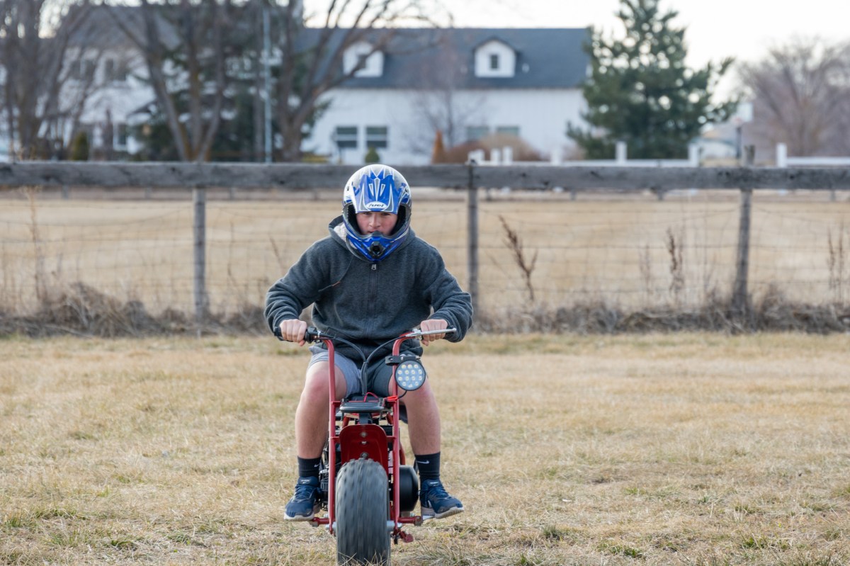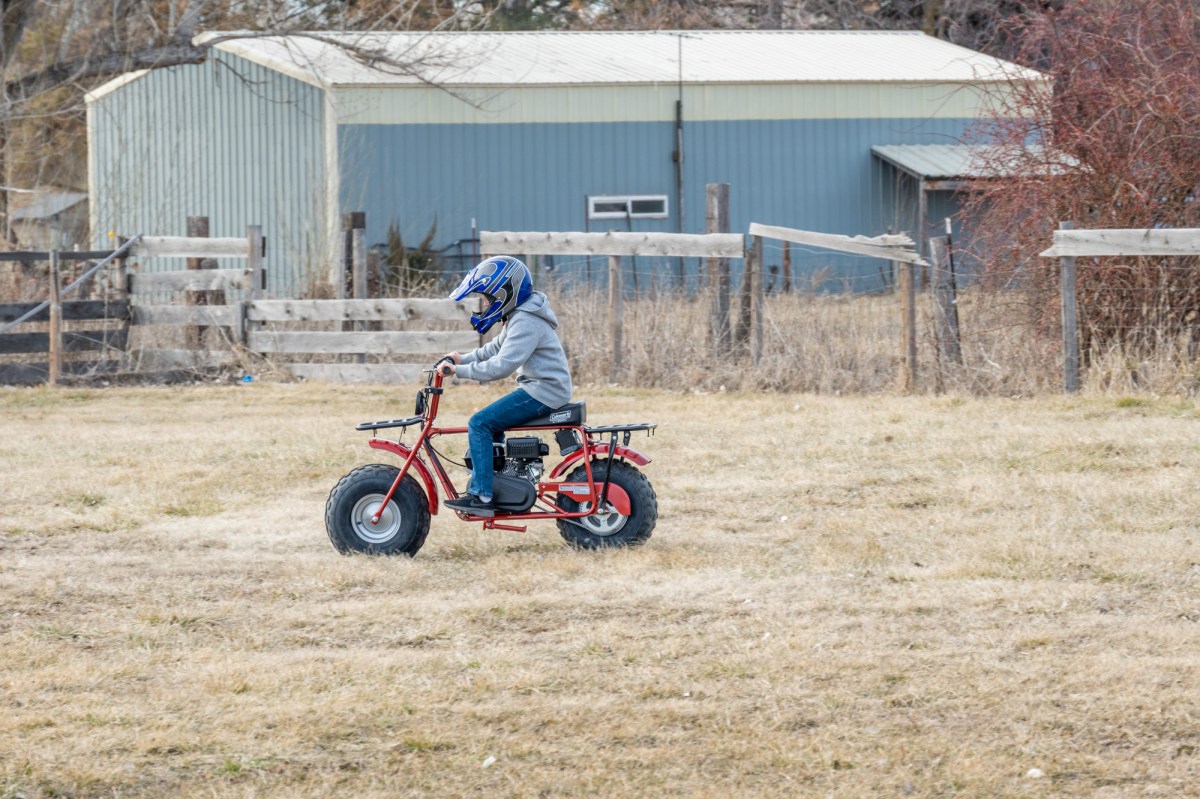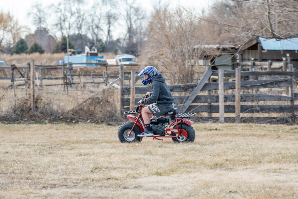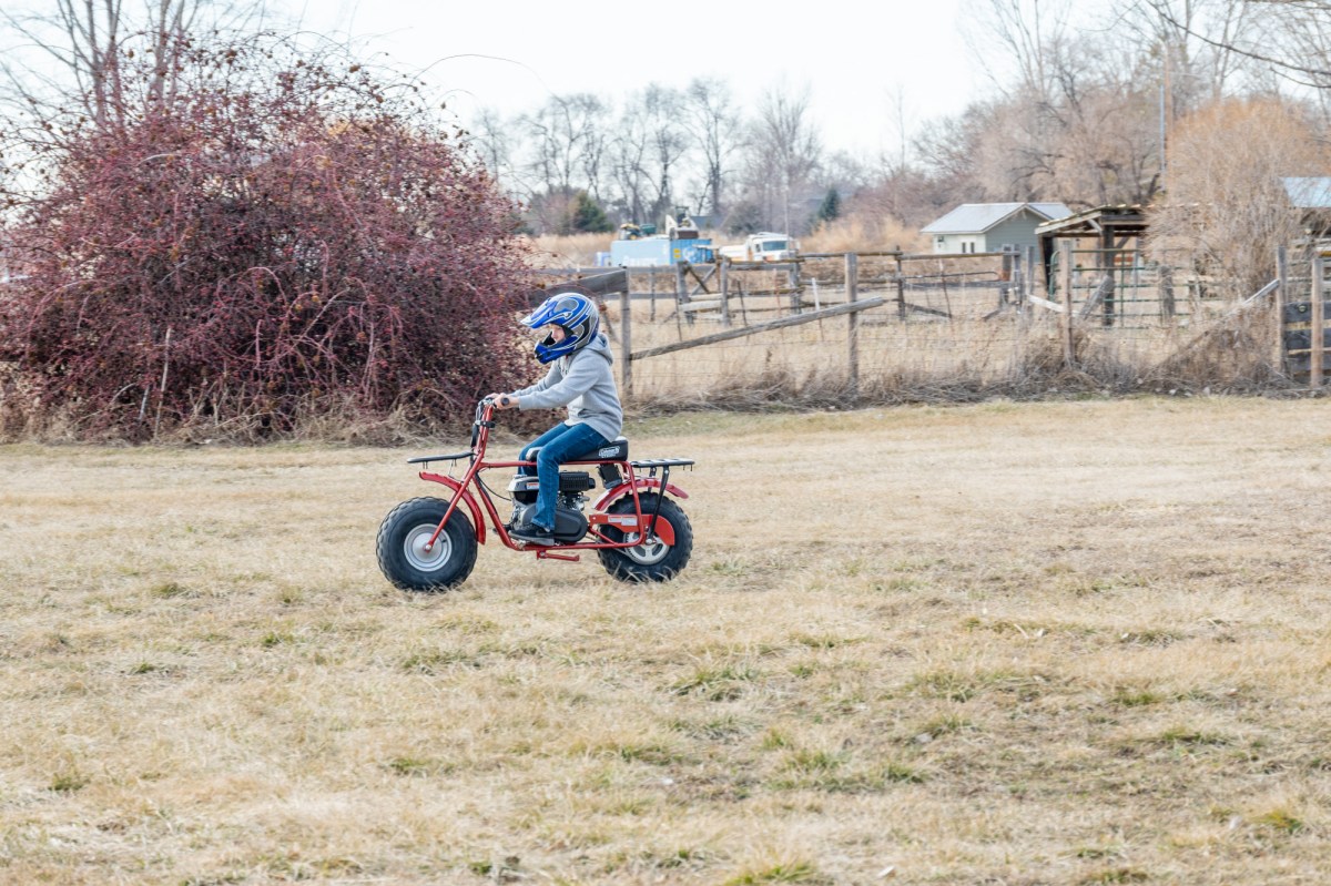 Jayse started the motorcycle when we got there and went full throttle into the dirt bumps and all. He about flew off and hit his knee on the handle bars. He didn’t want to ride too much after that.