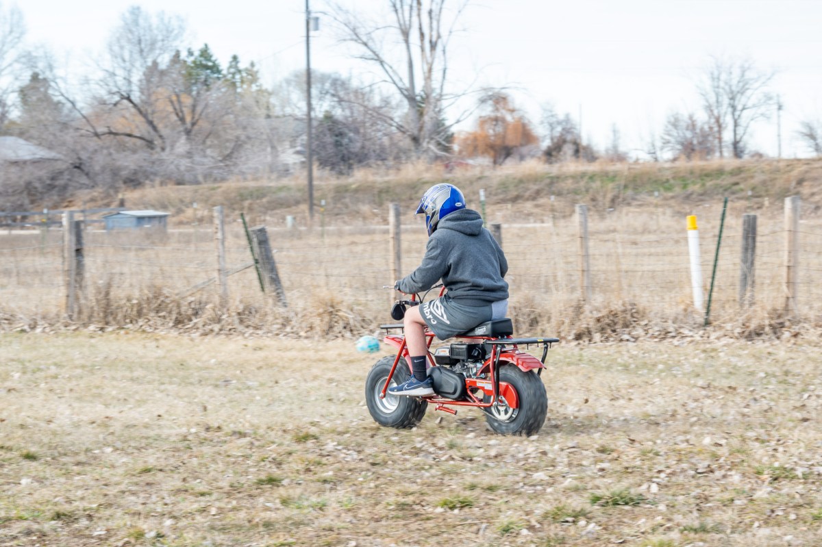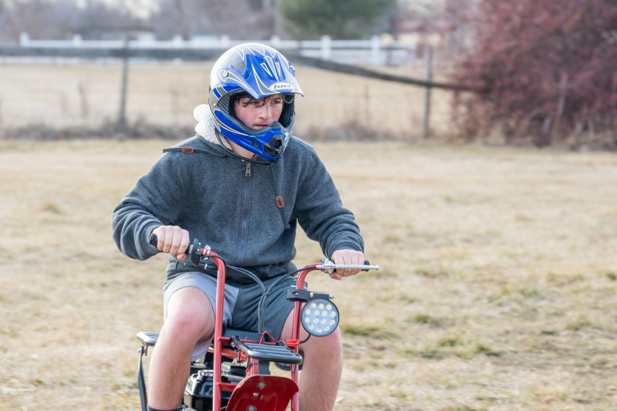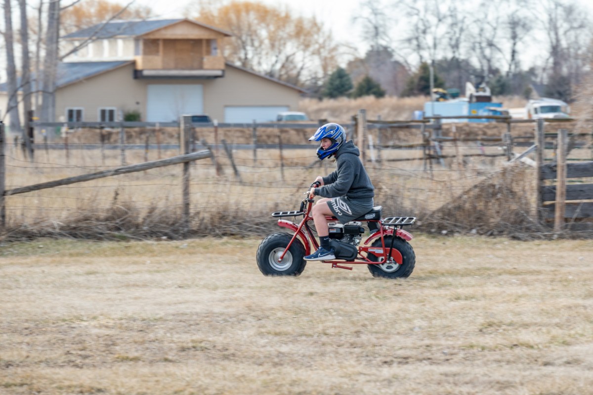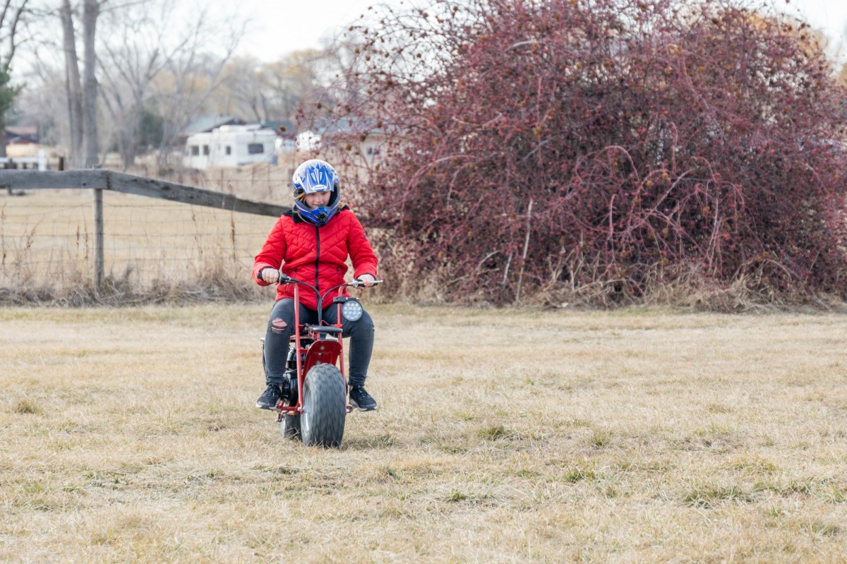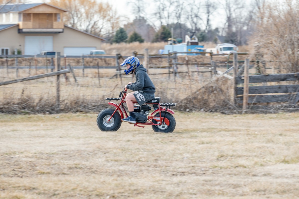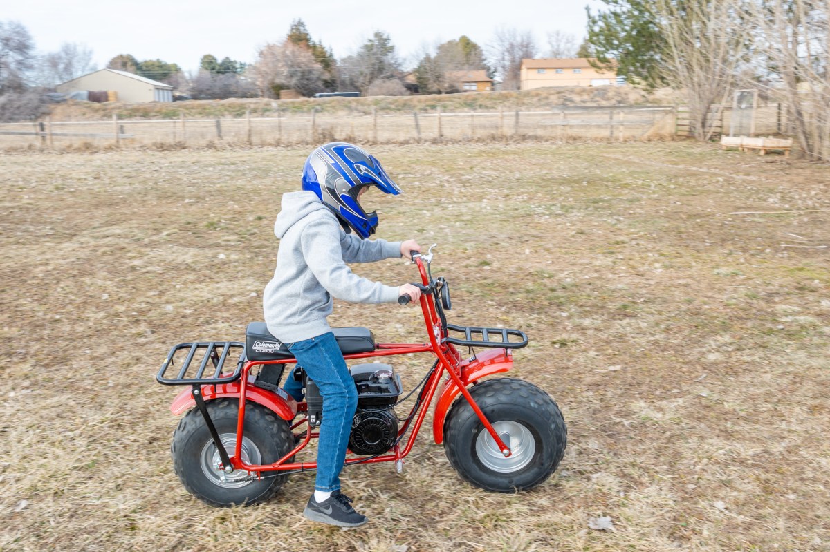 Jayse started the motorcycle when we got there and went full throttle into the dirt bumps and all. He about flew off and hit his knee on the handle bars. He didn’t want to ride too much after that.
