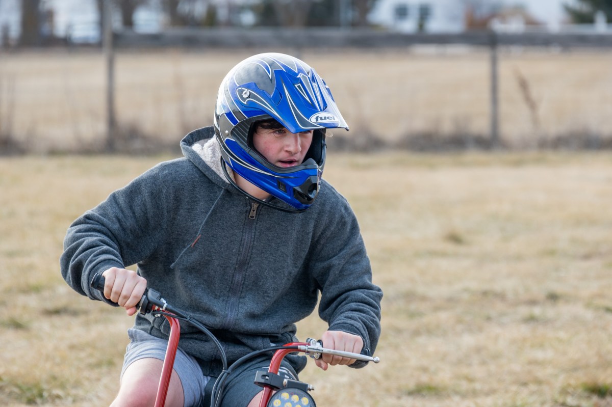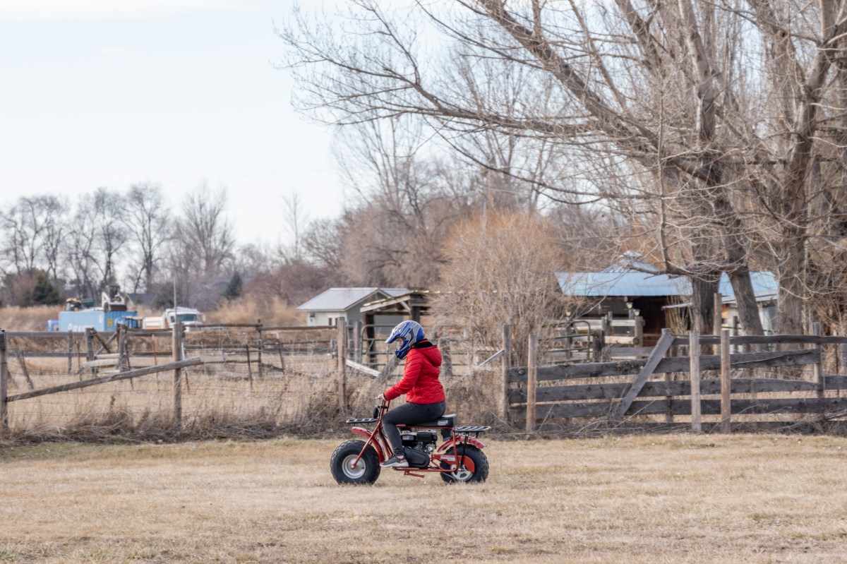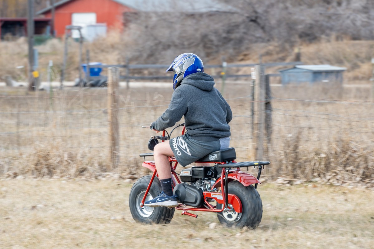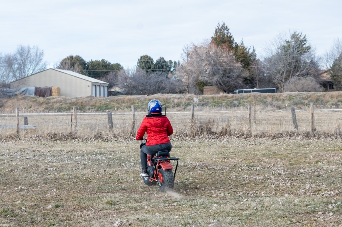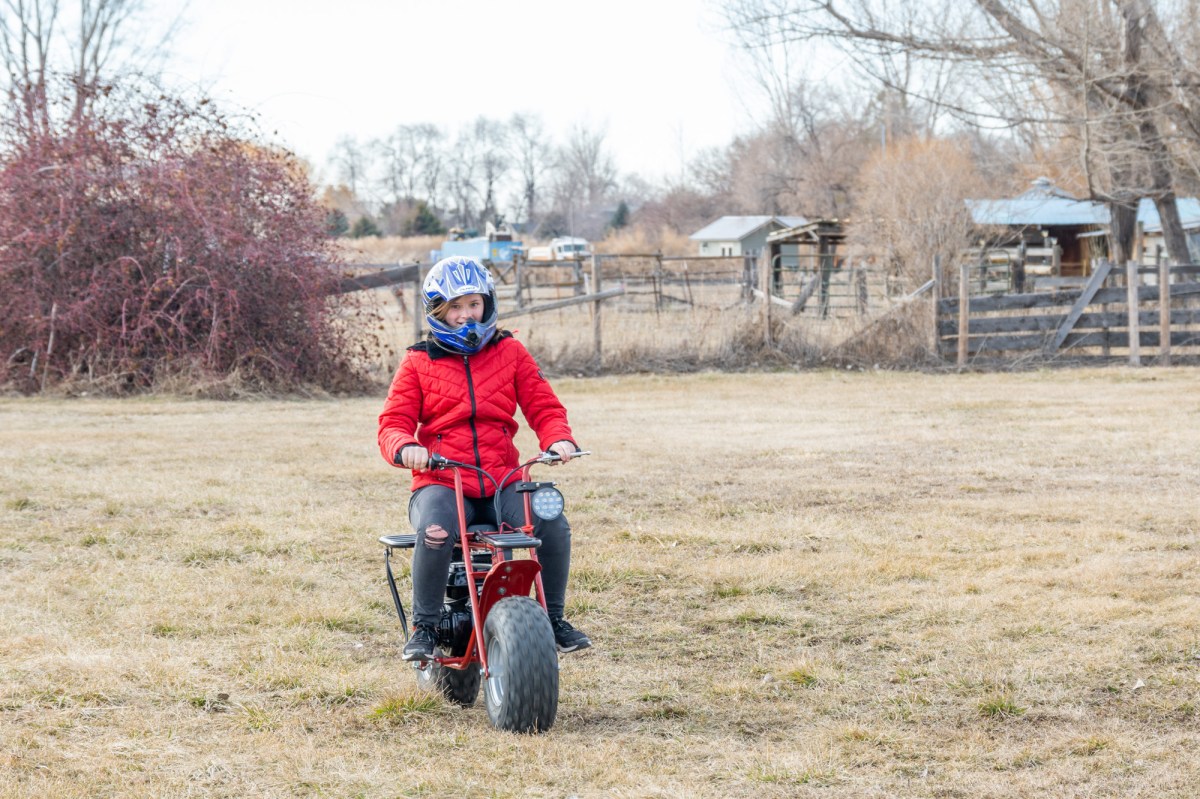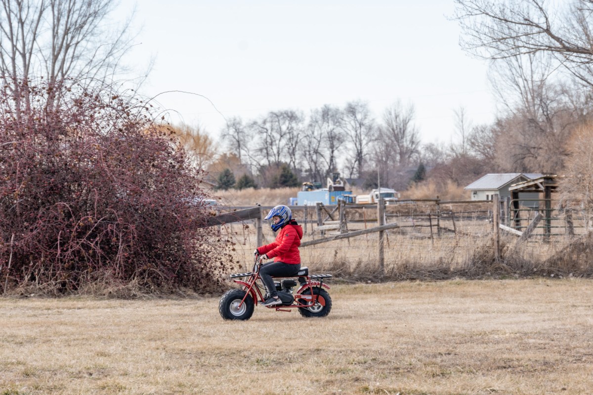 Jayse started the motorcycle when we got there and went full throttle into the dirt bumps and all. He about flew off and hit his knee on the handle bars. He didn’t want to ride too much after that.