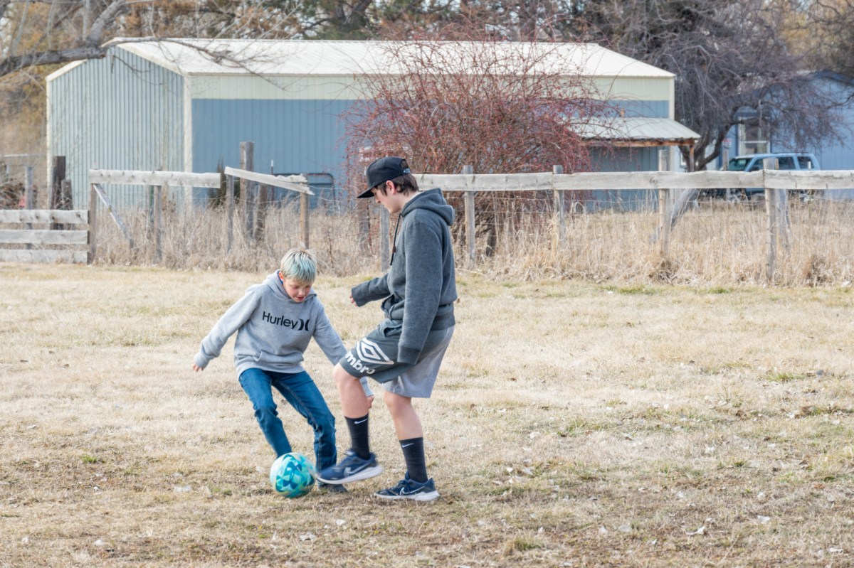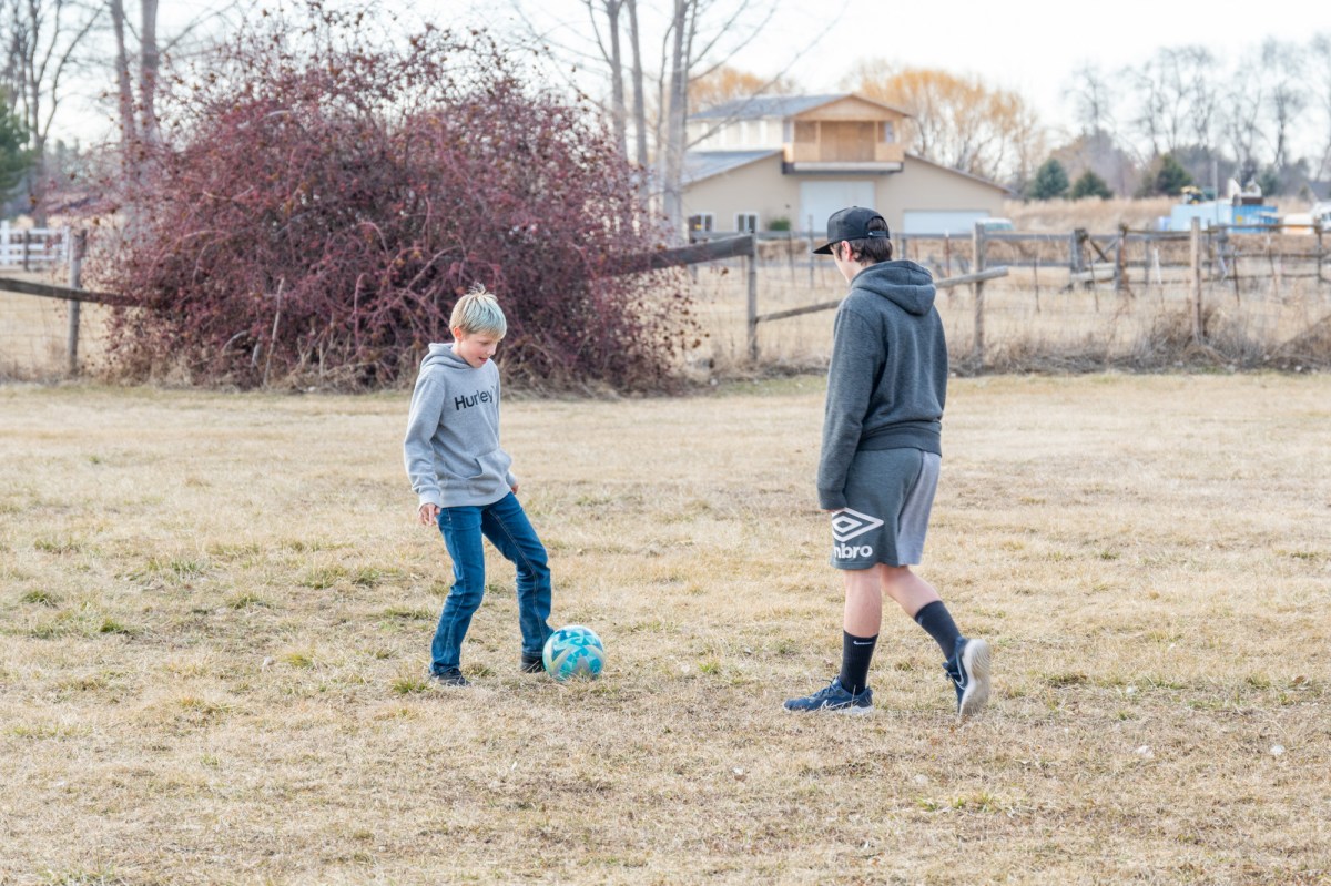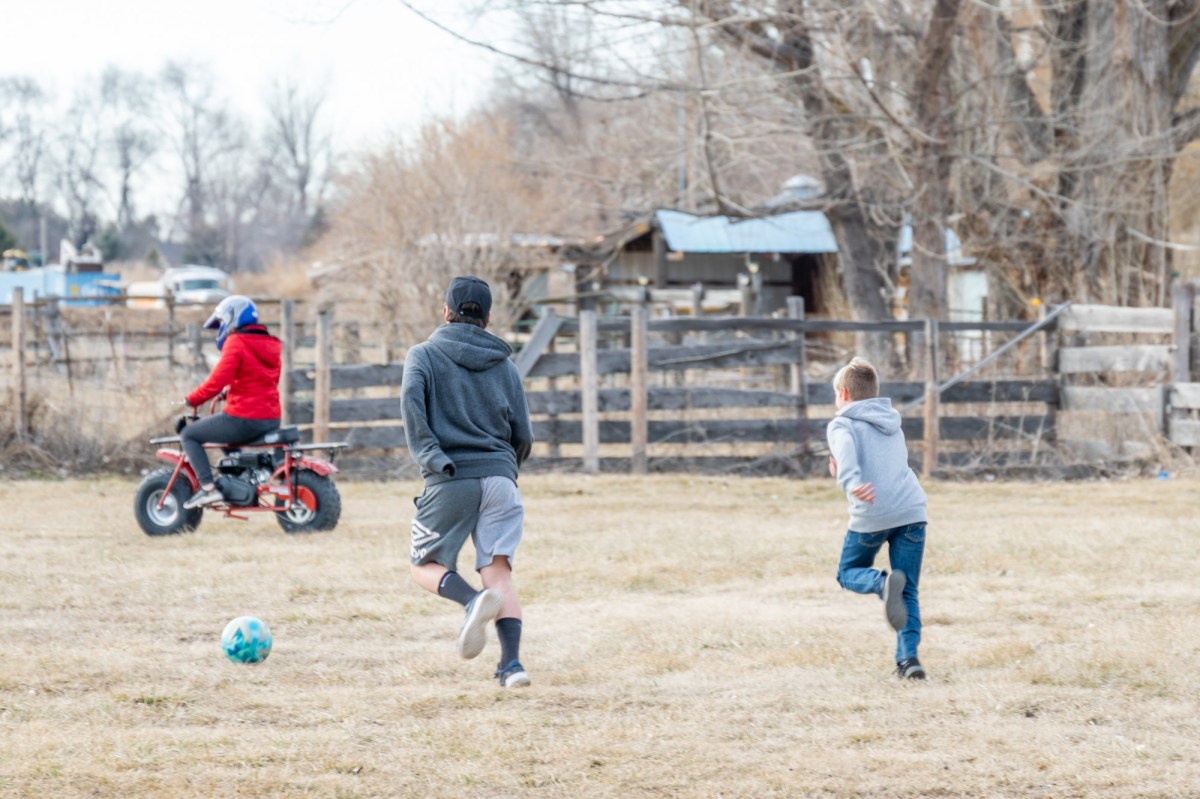 Jaelee is a much more cautious driver. She rode around in circles for a while, Cole gave it a try for a lap and I made Jayse get back on for a few. Jayse and Cole played soccer while Jaelee rode the bike and then they all took a break and were building a fort and climbing trees. Felt good to be around family again and see the kids playing. I’m a bit jealous of their property, Greg and I hope to have some some day as well.