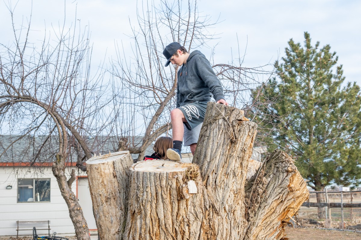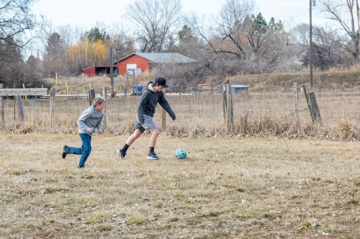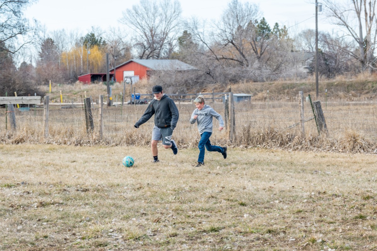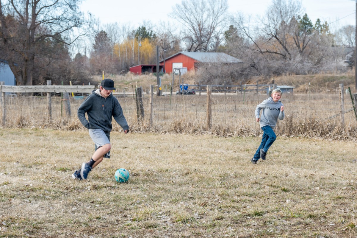 Jaelee is a much more cautious driver. She rode around in circles for a while, Cole gave it a try for a lap and I made Jayse get back on for a few. Jayse and Cole played soccer while Jaelee rode the bike and then they all took a break and were building a fort and climbing trees. Felt good to be around family again and see the kids playing. I’m a bit jealous of their property, Greg and I hope to have some some day as well.