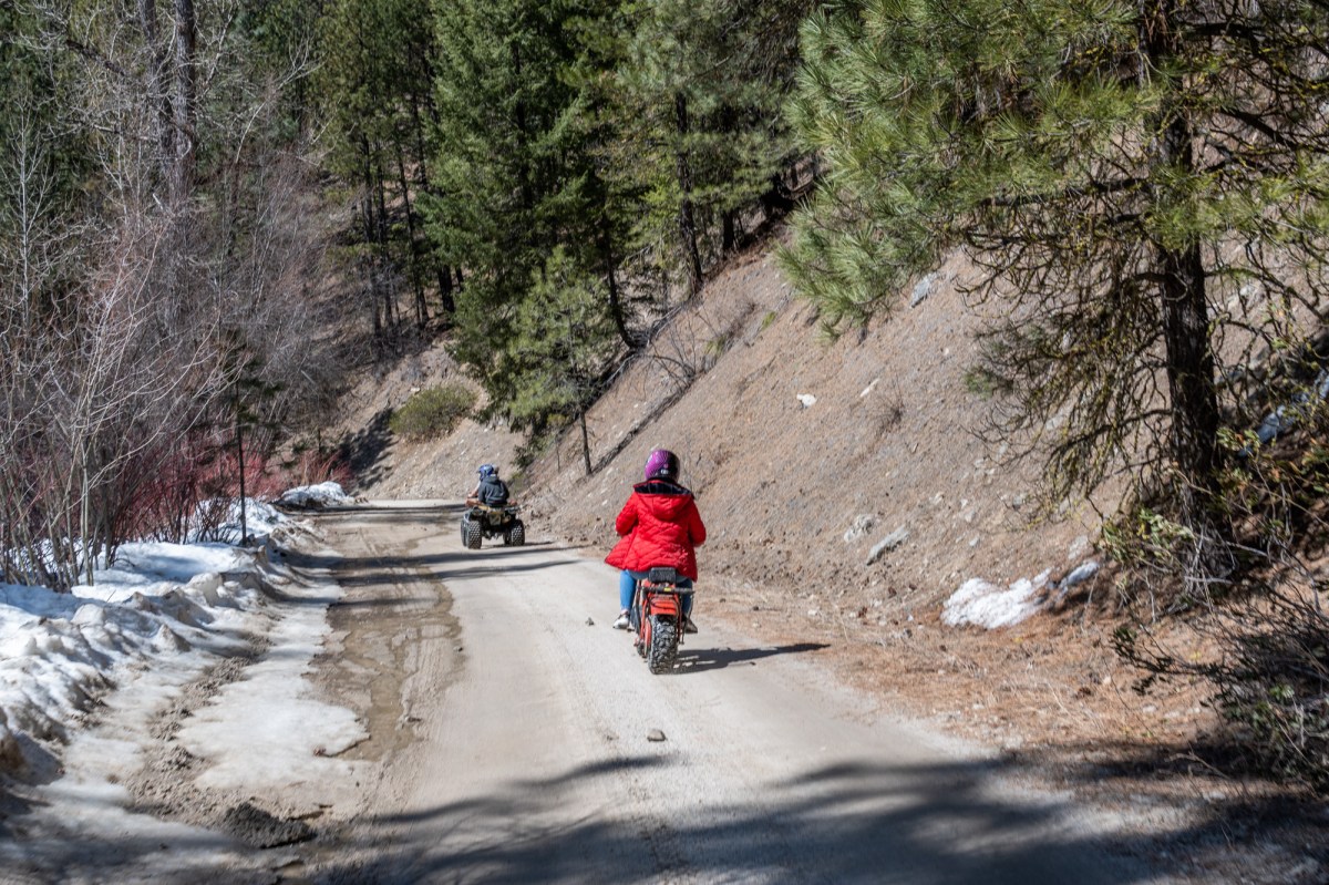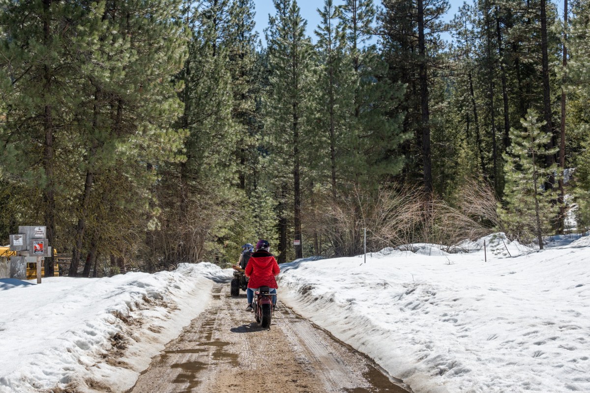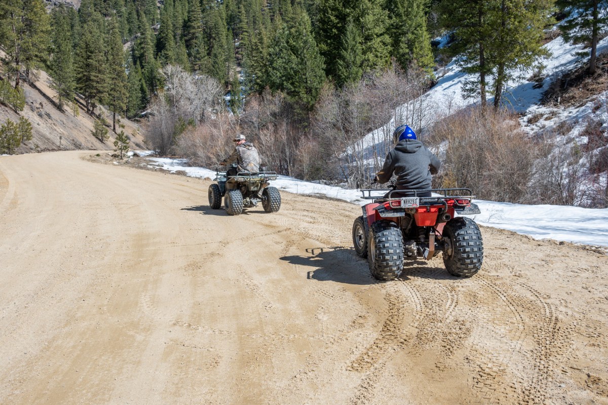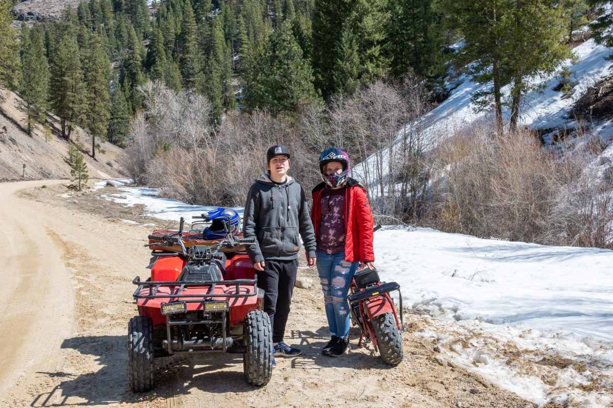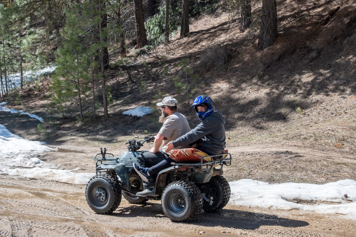 We had so much fun riding the four wheeler and bike around camping that we decided to just go out for a day and ride around. Greg took us to the mountains, a place he knows from hunting. He was hoping the road would be solid enough to ride up to where he wanted to bear hunt his year but it was still pretty covered in snow. We ended up just riding around on the main road.