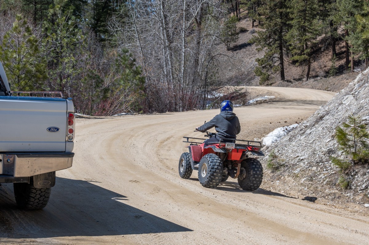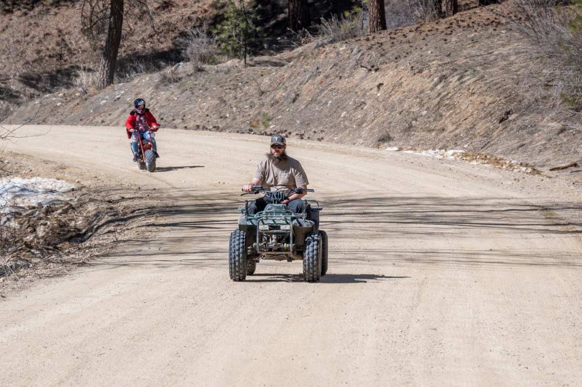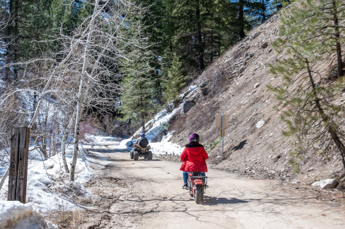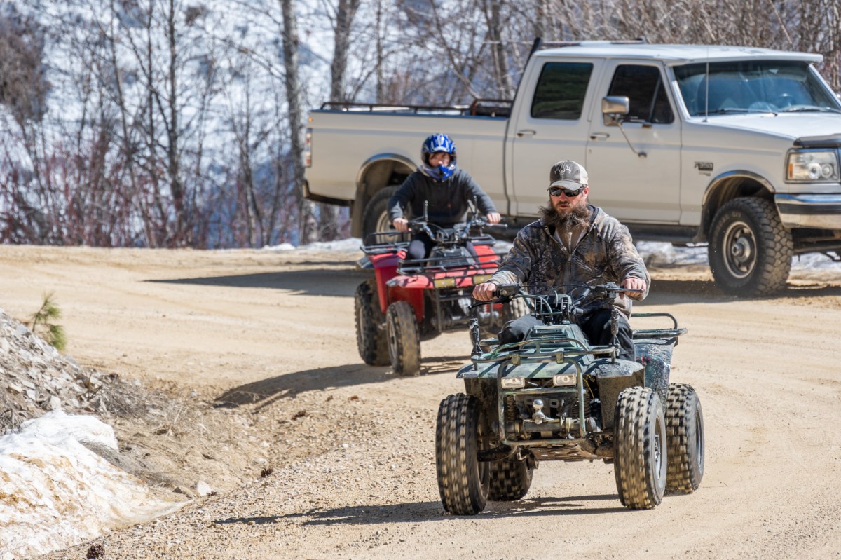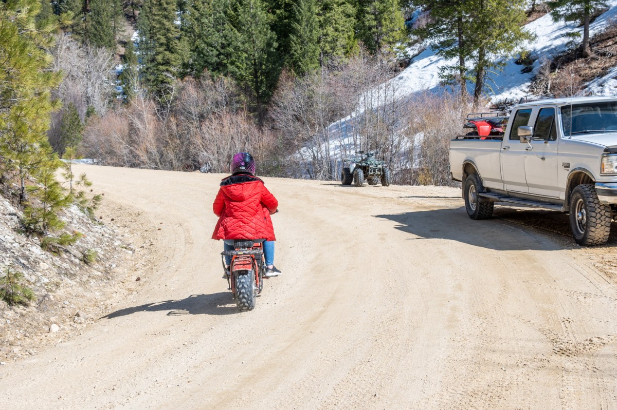 We had so much fun riding the four wheeler and bike around camping that we decided to just go out for a day and ride around. Greg took us to the mountains, a place he knows from hunting. He was hoping the road would be solid enough to ride up to where he wanted to bear hunt his year but it was still pretty covered in snow. We ended up just riding around on the main road.