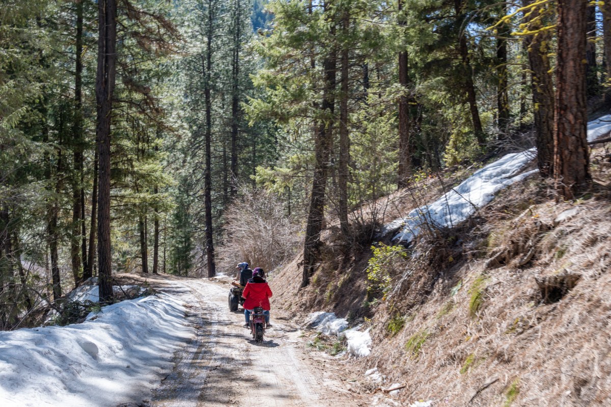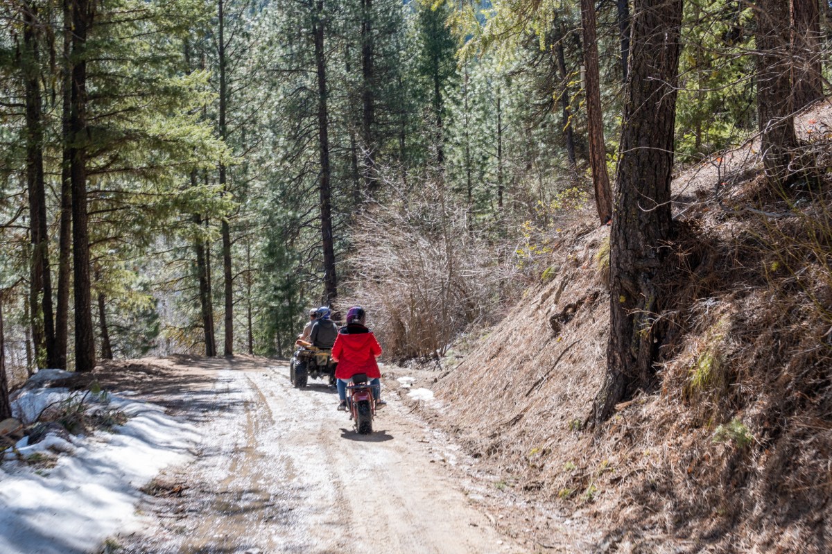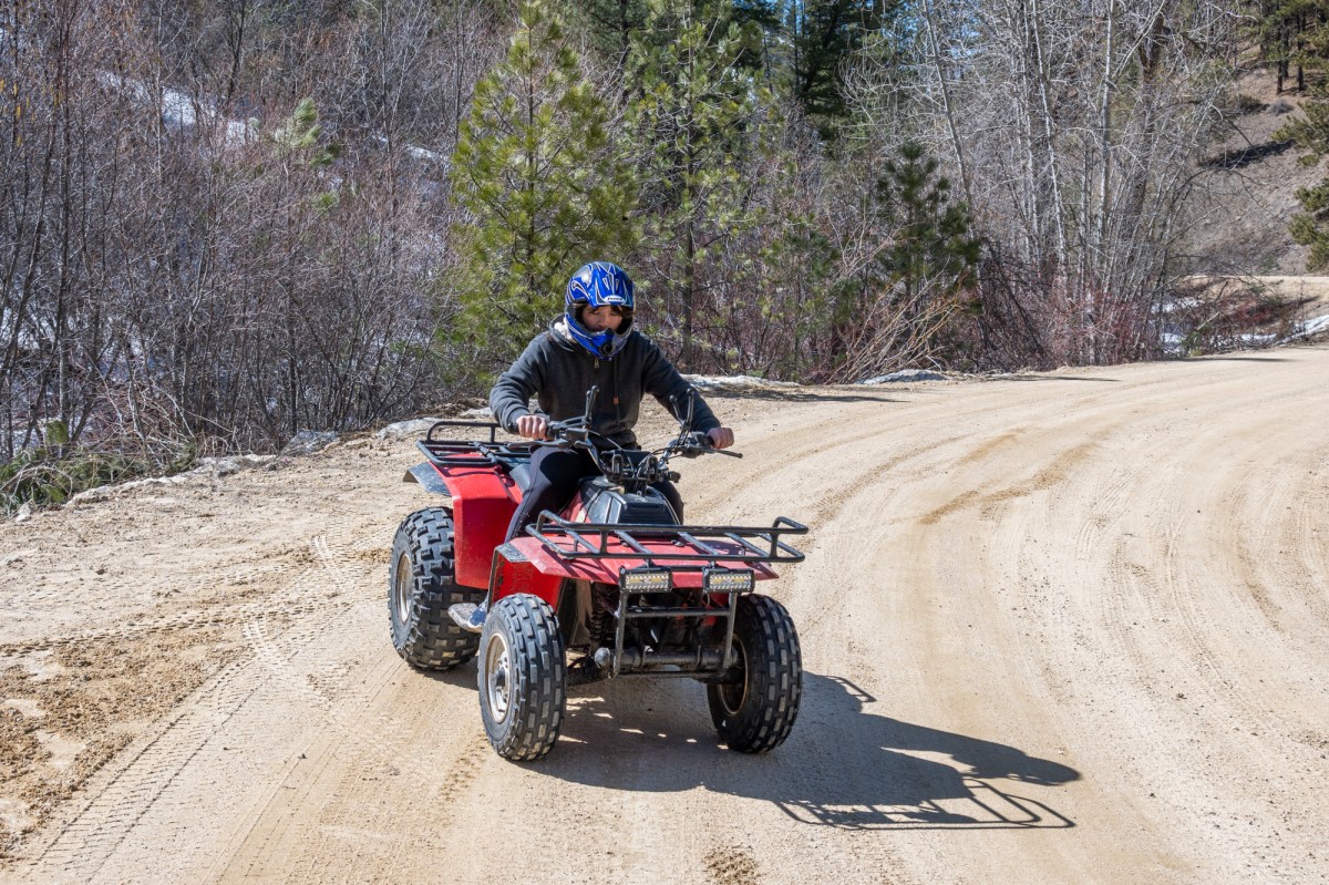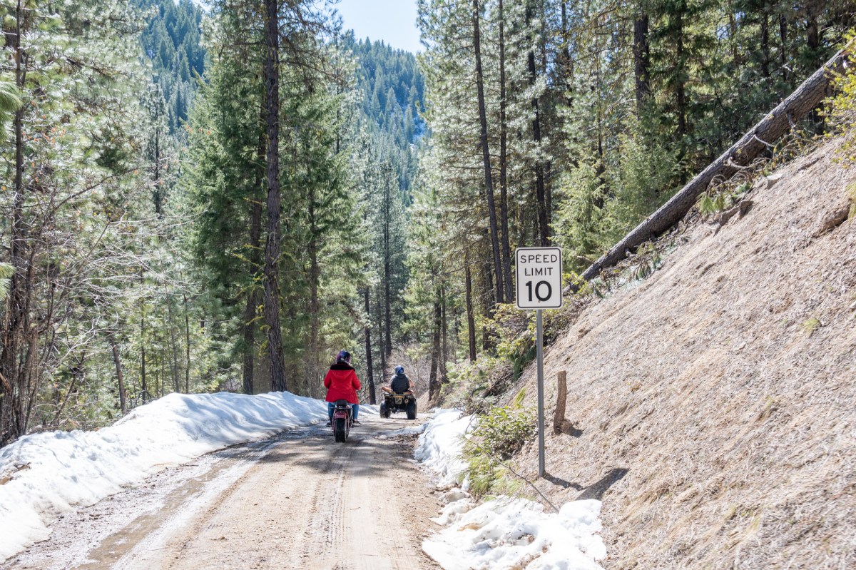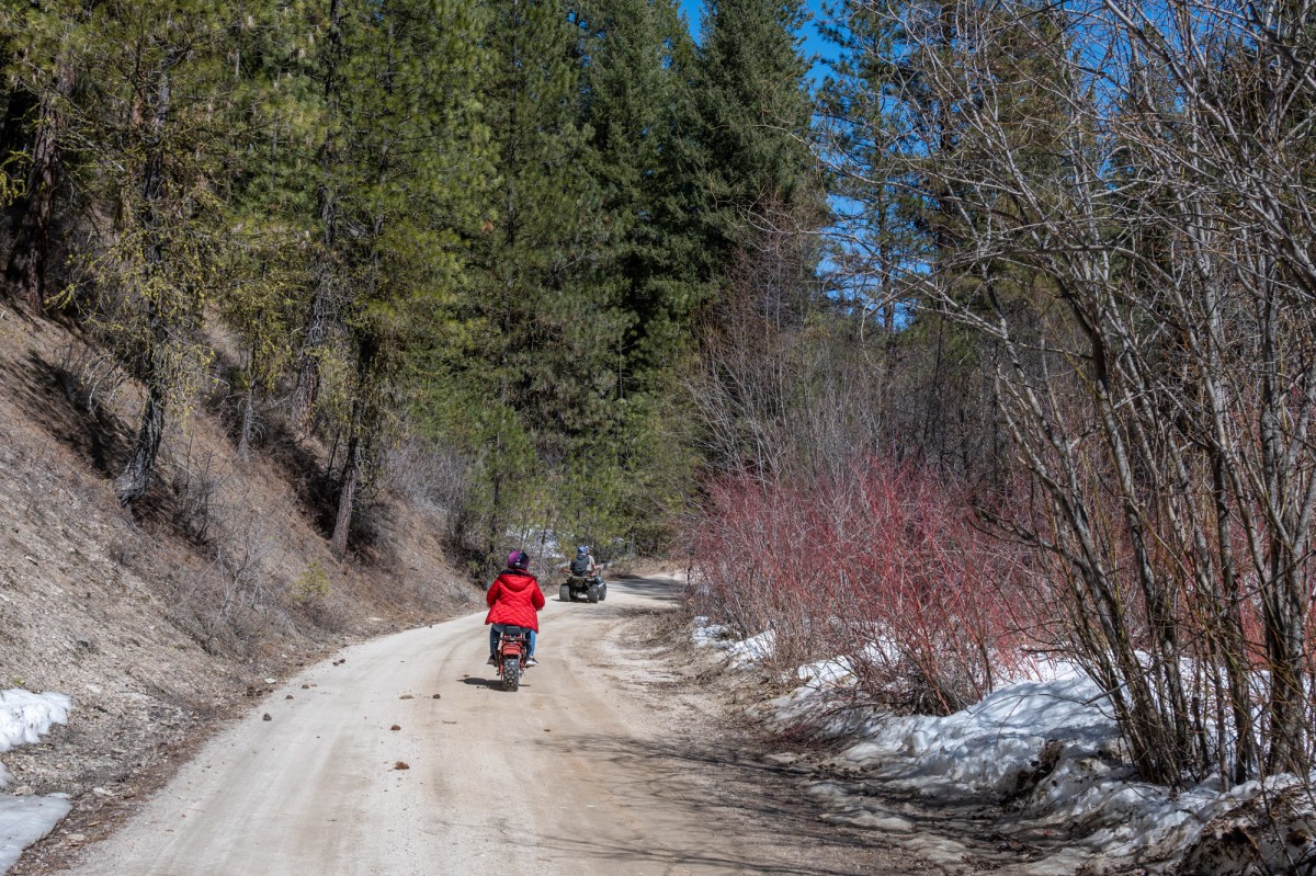 We had so much fun riding the four wheeler and bike around camping that we decided to just go out for a day and ride around. Greg took us to the mountains, a place he knows from hunting. He was hoping the road would be solid enough to ride up to where he wanted to bear hunt his year but it was still pretty covered in snow. We ended up just riding around on the main road.