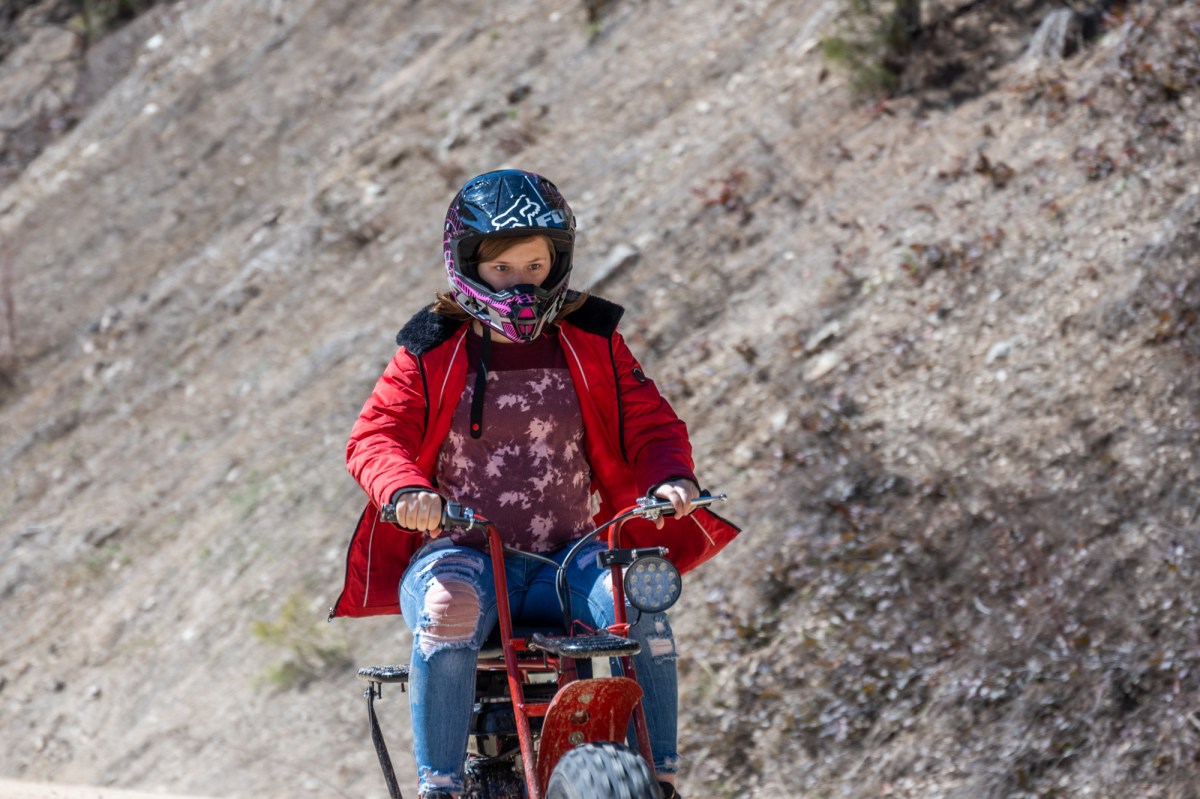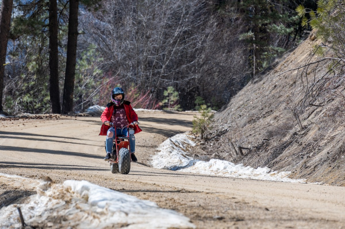 After that we stayed lower on the road where there was no snow and it was sunny and warm. We all took turns riding up and down the road. It was a great day.