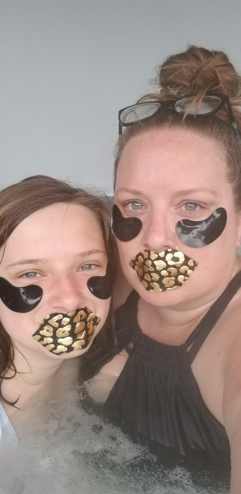 The boys had been going to the mountains about every weekend to bait a bear. I’ll have a post on that too. So while they were gone Jaelee and I enjoyed many days in the hot tub doing spa days. I get subscription boxes with lots of masks in them so it’s fun to try them with her.