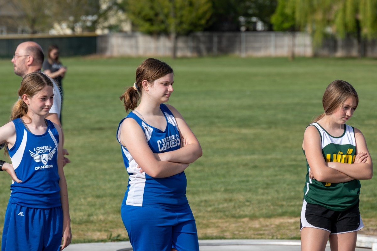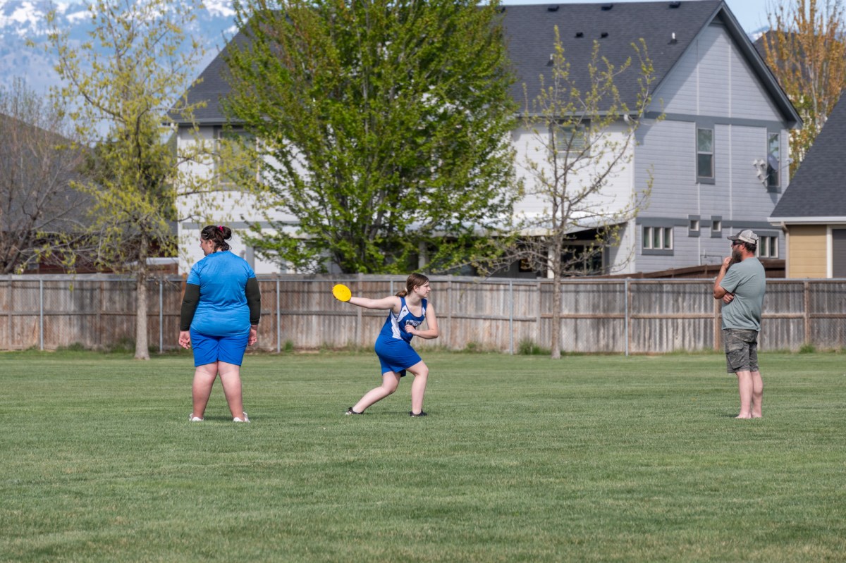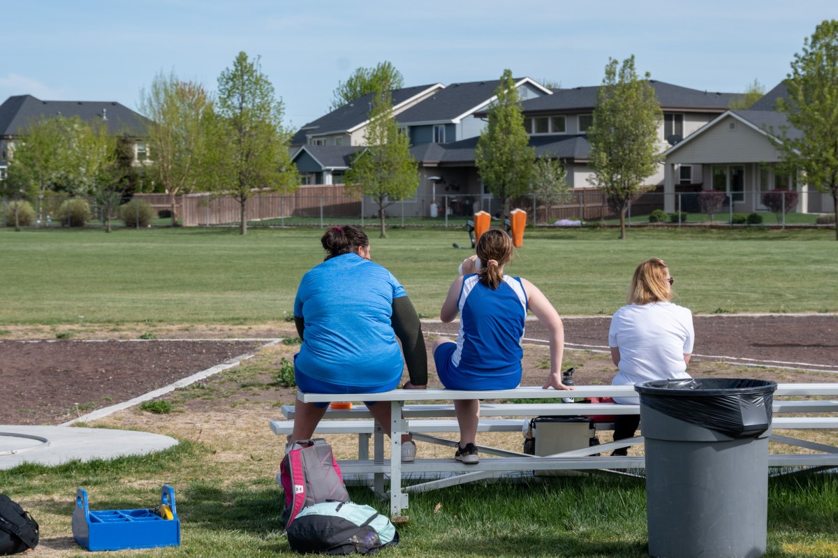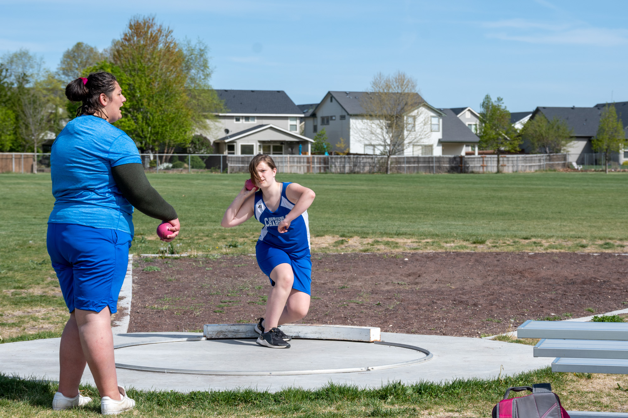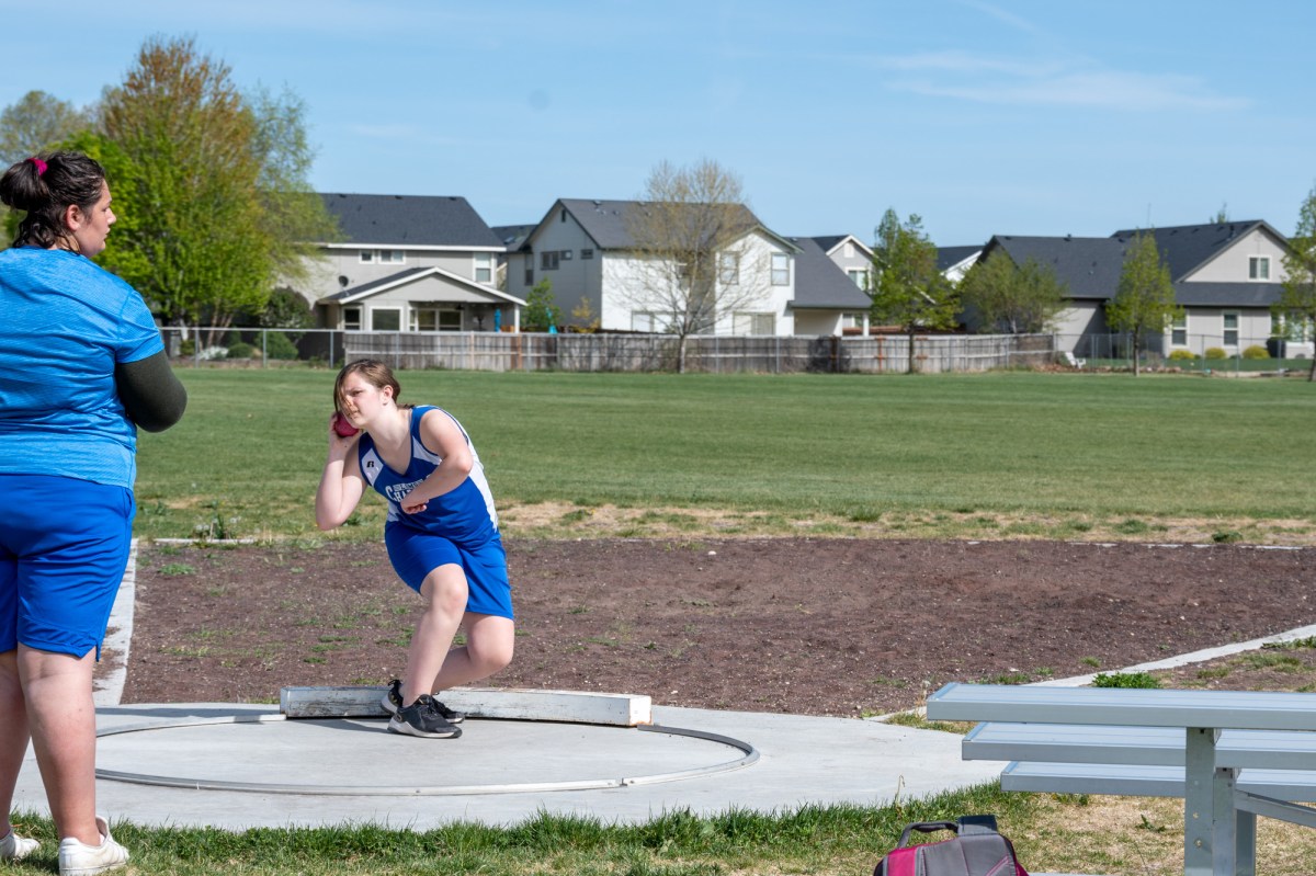 While she was warming up and practicing Greg did go over and give her some pointers. Her coach is not exactly a track super star like her dad. He is the spanish/guitar/orchestra teacher that just volunteers to help track. And the other volunteers helping didn’t even know how to measure the throwing distances so Greg and another dad had to help get them on the right track for that too.