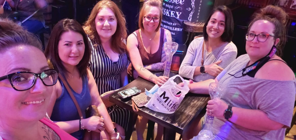 That night we went to Freemont Streeet. It was a lot of fun. The street performers and the lights are really fun. It was a bit cramped though. We had a guy go by and give us tickets to a Karaoke bar. Ana wanted to go and we all thought it would be fun too. I thought we’d only be there for a bit again but it was so fun so we stayed. They were playing music that brought us back to our club days. We had fun dancing and singing along. I will say one of us got a bit drunker than the rest and we needed to get some food so we left. We ended up getting a ride from our hotel driver back to our hotel. Ana ordered some Jack-in-the-Box tacos on our way back cuz that is a must when you are drunk. Sadly the food driver took forever and it took over an hour for the tacos to show up. They were soggy, missing half and cold by the time we got them. Most everyone had passed out. Half of us had to be up early to catch our airplane home.