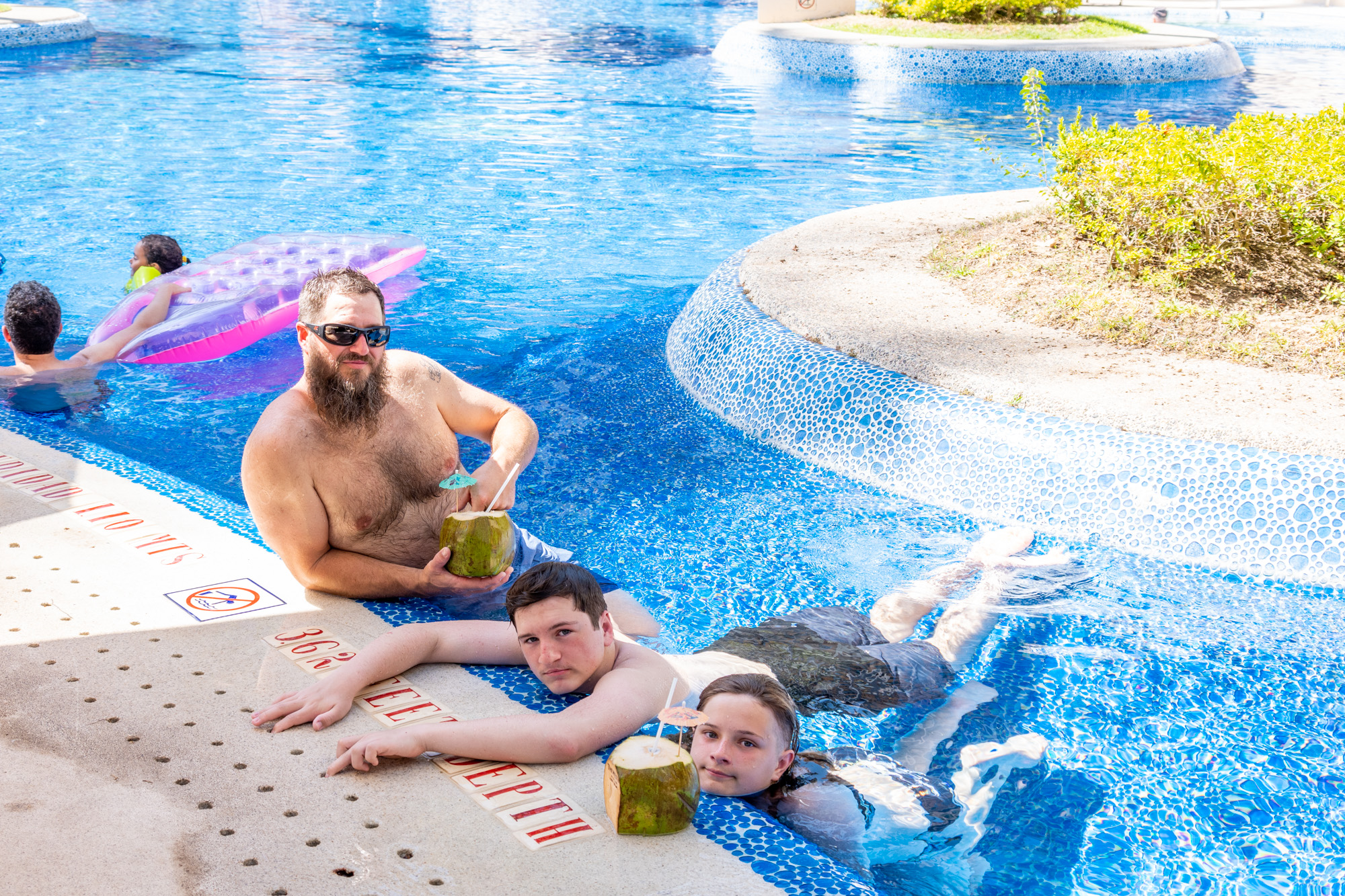 While by the pool we saw our first iguana. We all thought that was pretty neat, we’d see them everywhere after this. We got a few drinks from the pool bar. Greg and Jaelee got drinks in a coconut. Jaelee’s was just coconut water and Greg’s was some mixed drink. I’d tried coconut water before in Hawaii and it was gross so I was good to pass. Jayse tried Jaelee’s and didn’t like it. Jaelee thought it was ok, she drank some of it but eventually gave it to Greg who took it to the bar and had them add some adult mixins into it.