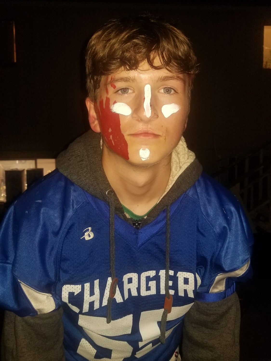 Jayse went to the high school football game and came home with his face painted. He said a girl asked if she could do it.