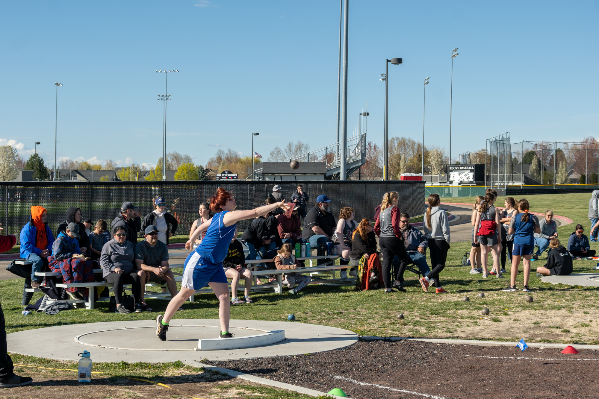 Their first meet was away. This track is not set up the best. Shot and discuss are close to the track but there is a fence around that doesn’t allow you to get between the 2 very easily. We were not sure how soon Jayse’s meet would be. While we were watching Jaelee I heard an announcement and thought he’d be up soon so I ran to the stands to catch him. Turns out it was a long time before he ran and I missed Jaelee doing discus. I got to see her doing shot though. She did a really good job.