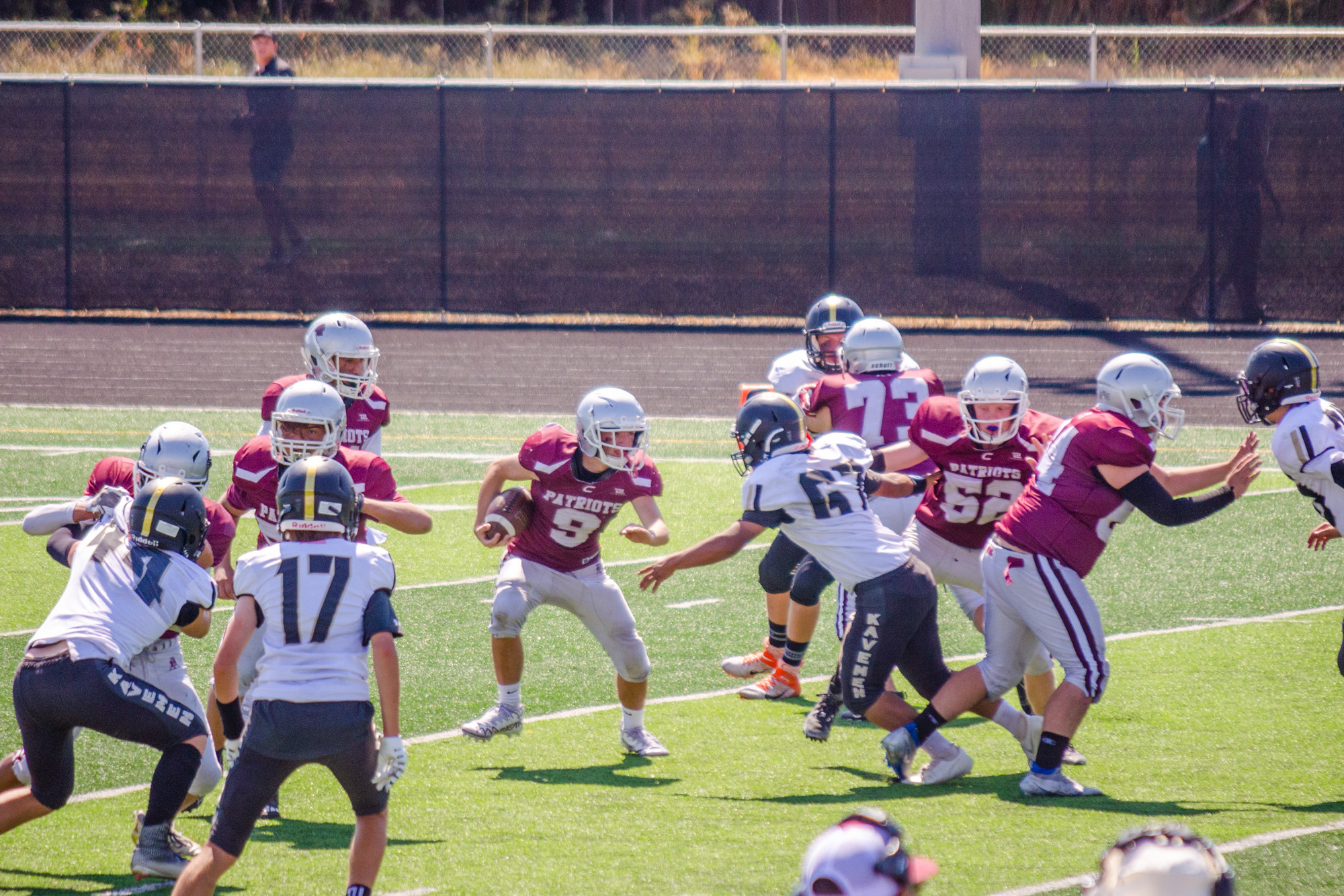 The game was a close one but we pulled out a win 16-12. Jayse played D-End and Running Back. Two positions he’s never played before. He is #9.