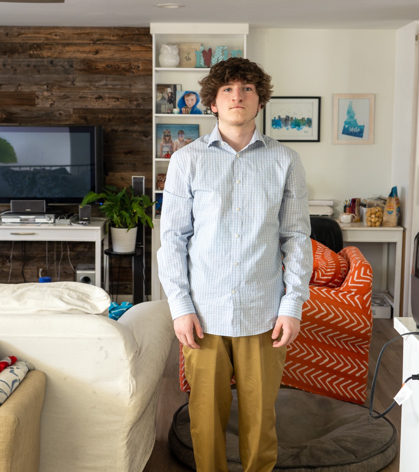 Before the interview though we had to go shopping because he had nothing to wear. We found him some kahkis and a button up shirt but he drew the line at dress shoes and said he was fine wearing his white tennis shoes.