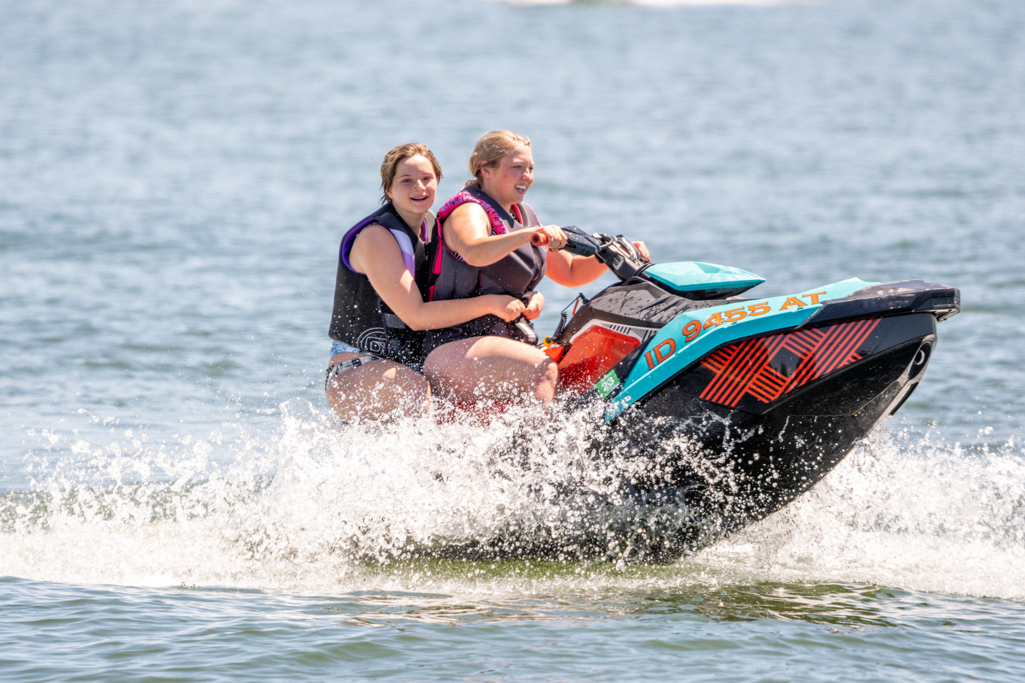 Savanah took Jaelee out on the wave runner. Jaelee wanted Savanah to try and throw her off into the water.