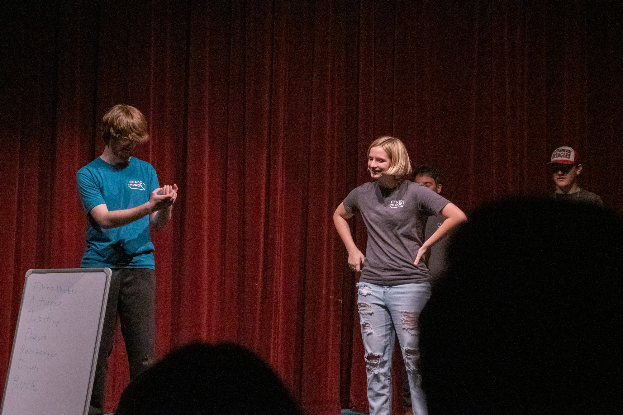 This was a skit called Return Desk. The audience gave suggestions of items that would be returned. There was one person at the return desk and the rest of the group had to go up and guess what they were returning. They didn’t know and the guy at the return desk couldn’t say. It was pretty funny. Jaelee guessed hers pretty quick. It was dentures.