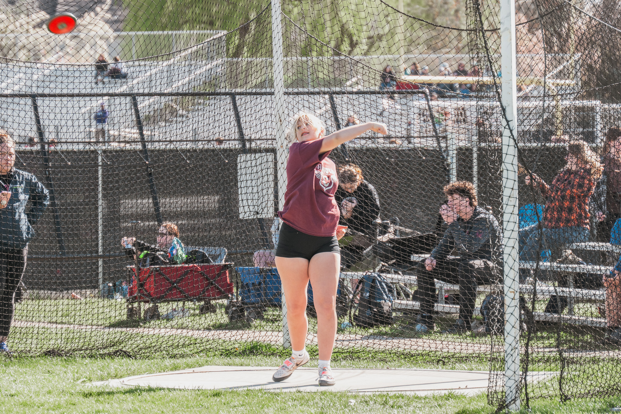 The kids that were marking for discus didn’t seem to be super accurate. They were marking some a little short and some long from what Greg and I could tell. On one of Jaelee’s they marked her’s off we thought by about 4-6 feet. She got 84.2 which was a huge PR for her. She was so excited and jumping up and down. We let it go and that officially became her new PR. She did throw really well and probably would of got a PR even if they had marked it more accurte.