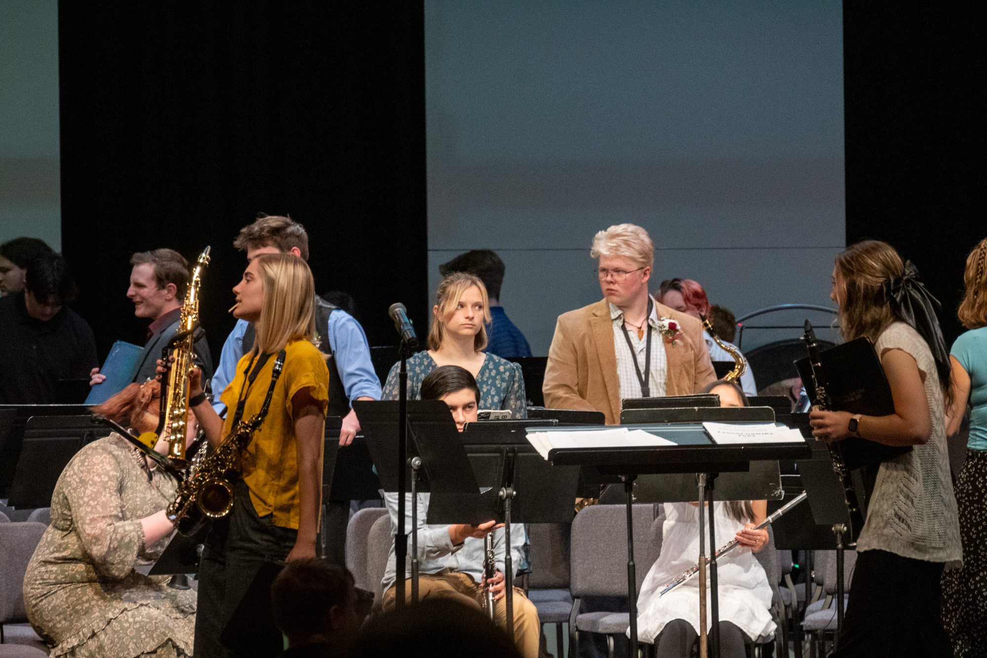 Jaelee had her last band concert of the year. The jazz bands performed earlier in the evening, the concert band and then symphonic band. At the end of the concert they honored the seniors. There were a lot!