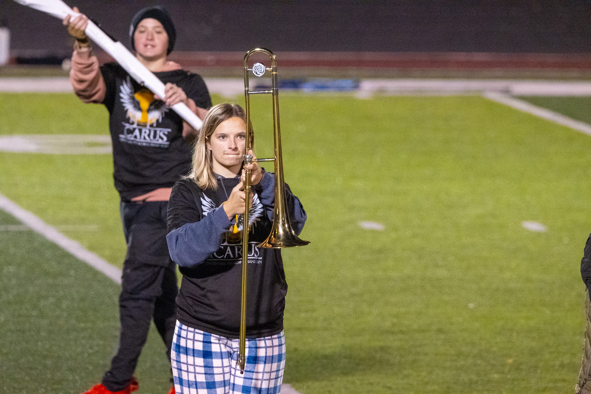 Night on a Hill is a fun tradition. It’s the last practice before the D3 competition and parents get to come and watch. During the first portion of practice the parents decorate the band room and hall. They fill it with posters and encouragement for D3.