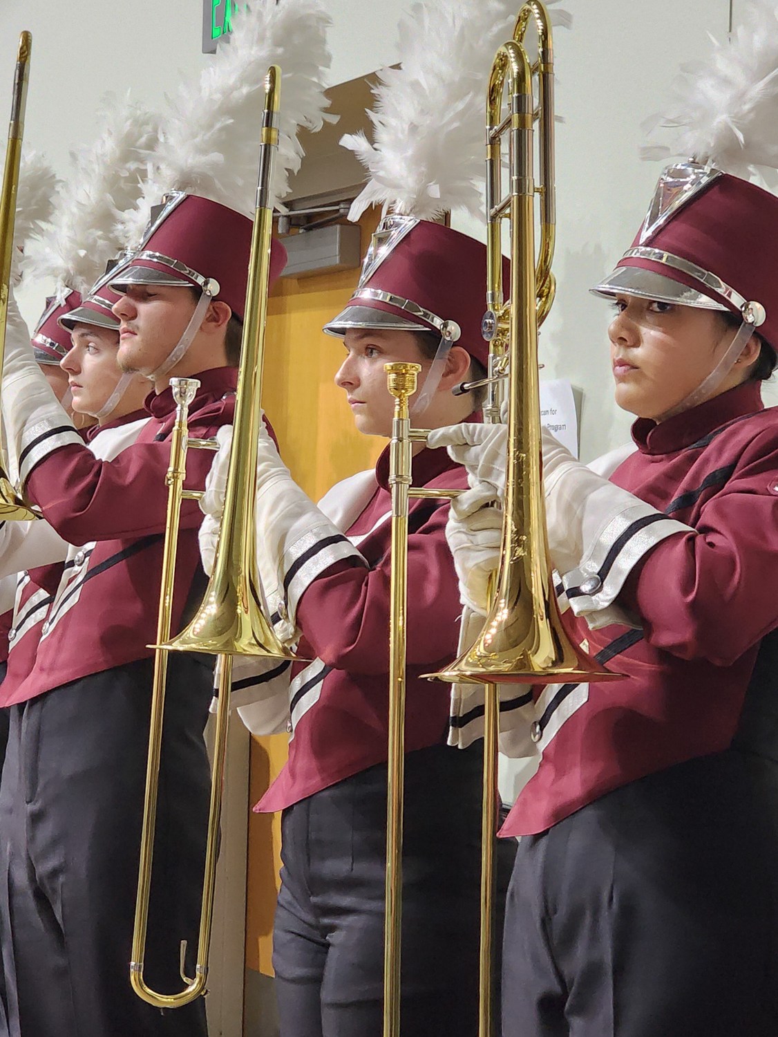 I love when the drums play as the rest of the marching band enters the room. They fill the room along both sides. Jaelee let me know before the performance what side she’d be on and approximately where.