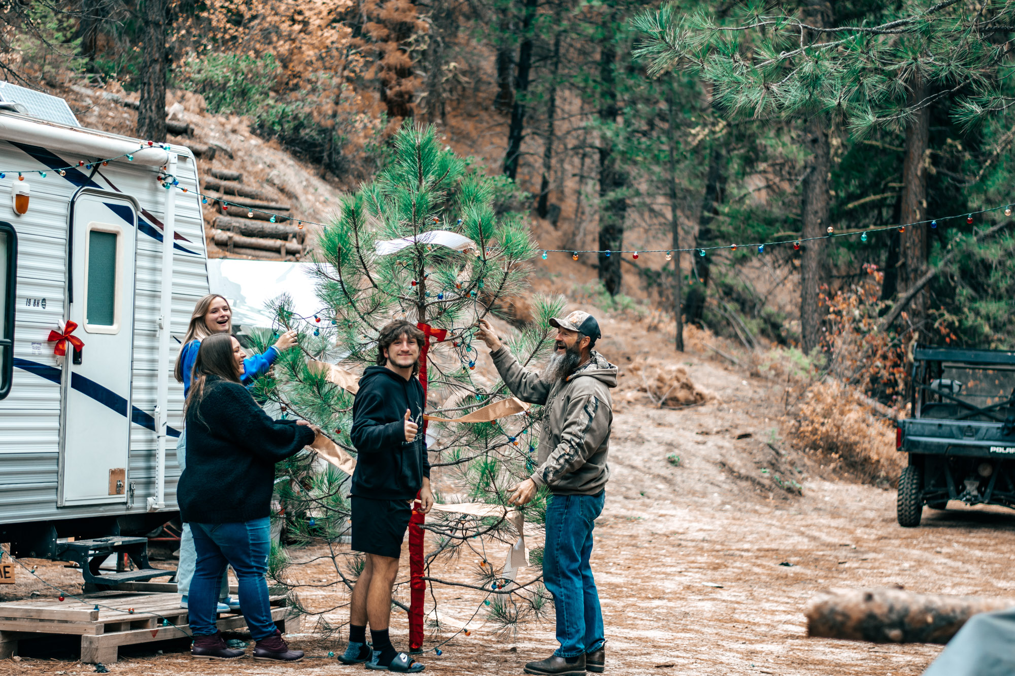 I wanted our Christmas card to be themed around our new property. I thought it would be fun to show it decorated for Christmas and us looking jolly decorating a rustic Christmas tree. Greg had been out at the property hunting, Jayse too. So Jaelee and I put some of our Christmas decorations in the car and headed out to met them at the property.